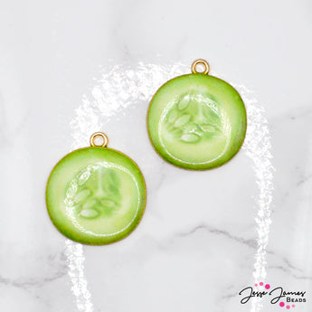Embrace the rejuvenating vibes of a spa day with our Spa Cucumber Slice Charm Pair. Add a splash of freshness to your jewelry creations and let these charming cucumber slices inspire you to craft pieces that are both beautiful and revitalizing. Charms measure 23mm. 2 charms per order.