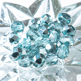 Czech Fire Polish 4mm Glass Beads in Coated Crystal Aqua