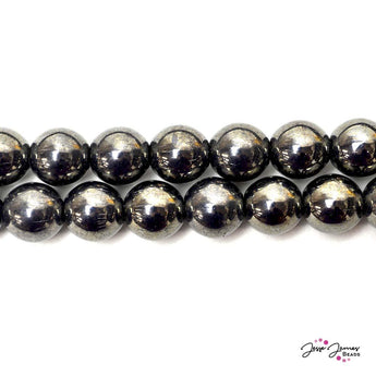 Black Hematite Big Boy 12mm Czech Glass Pearls