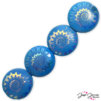 Explore the mysteries of Poseidon's palace with these beautiful oceanic inspired Czech focal beads. High Quality Oceana Czech Beads are artisan crafted and sourced directly from the Czech Republic. These ocean inspired beads are laser tattooed giving them a beautiful laser engraved pattern. Measure approximately 18.5mm X 4mm. 4 beads per set
