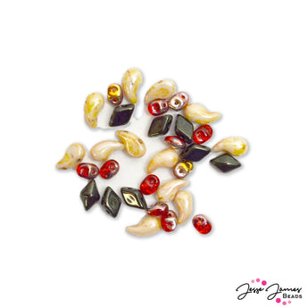 This czech bead set features 6 right teardrops, 6 left teardrops, 8 diamonds, and 12 superduo beads. Perfect for creating earrings or rings. Largest bead measures 9mm. Smallest bead measures 5mm. All Winter Workshop items start shipping November 16th, 2022.