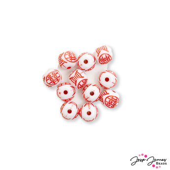 These adorable little beads feature Chinese symbols etched onto an acrylic base. Each bead measures approximately 9.7mm. 12 beads per set.