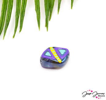 These beautiful rich purple beads feature a playful accent of teal and yellow color. Each bead measures 16mm x 20mm, making them the perfect size for focal pieces on bracelets, necklaces, and more. Sold individually.