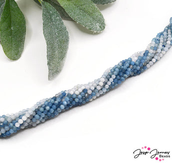 Swim through this beautiful ombre of Aquamarine color with these beautiful 3mm beads. these beads feature natural Aquamarine stone, giving each bead it's own unique color and marbling. These small beads are perfect for bracelets, earrings, and more. Approx. 80 beads per strand.