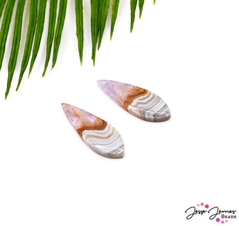 These stunning natural lace agate pendants feature an ombre of natural stone color and texture. Each pendant has it's own unique personality and color variation. These horse eye cut pendants measure 40mm x 19mm x 7.5mm in size with a 1.5mm hole for easy stringing on necklaces, earrings, and more.