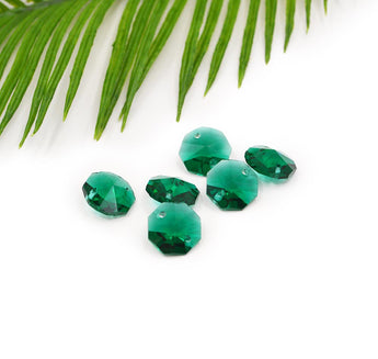 These beautiful gemstone-inspired glass connectors feature stunning sparkle and rich green color. With the sparkle and shine of Austrian glass, these connectors are perfect for adding to earrings, necklaces, and more for a pop of eye-catching color. Each set includes 6 pieces. Each piece measures 14mm x 14mm x 7mm. Hole size 1mm.