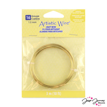 These gold colored artistic wire by beadalon features a tarnish resistant finish. This gauge is ideal for creating strudy wire-wrapped creations. Each spool features 10 ft of 16 gauge wire. 16 gauge wire is 1.3 mm thick.