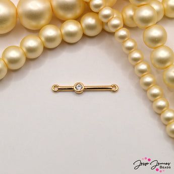 The Raise The Bar Connector Charm features a sleek brass bar design with dazzling clear cubic zirconia accent, perfect for adding a touch of elegance to your jewelry creations. Real 18K gold-plated for a long-lasting, luxurious finish, and nickel-free for safe wear, these connectors measure 18x3x2mm with a 0.9mm hole. Ideal for creating sophisticated, custom designs, this charm is a versatile addition to any DIY jewelry collection.