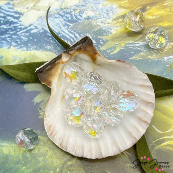 Capture a rainbow of undersea color with these mini faceted glass rondelle beads. Each crystal clear bead features a rainbow AB finish that captures hues of blue, purple, yellow, orange, and green when exposed to light. Sold in sets of 12. Each bead measures 8mm.