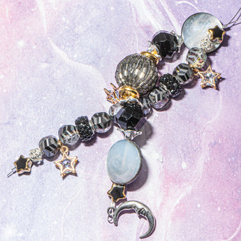 Create star-studded jewelry designs with this duo of space-inspired bead strands. Each strand features faceted glass beads, large hole rhinestone-encrusted beads, glass star beads, glass star charms, mother-of-pearl shell beads, silver seed beaded beads, gold-plated spacers, and mini silver-plated rhinestone round beads. Largest piece measures 18mm x 20mm. The smallest piece measures 6mm.