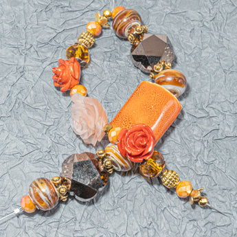 Create Autumnal jewelry with this stunning duo of 5-inch bead strands.Each set of strands features a large focal ceramic bead, custom dyed acrylic florals, large-hole beads, faceted glass coins, faceted glass rondelles, antique gold-plated metal beads, antique gold-plated bead spacers, and mini faceted glass rondelles. The largest bead in this duo measures 30mm x 22mm x 14mm. The smallest bead in this duo measures approx. 4mm.