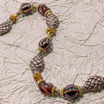 Add a touch of woodland magic to your next jewelry project with this nature-inspired 7-inch bead strand. This strand features adorable metal pinecone beads, mini ceramic beads, round glass beads, woven knot beads, and gold-plated bead spacers. Largest bead on the strand measures approx. 10mm x 12mm. Smallest bead on strand measures approx. 4mm.