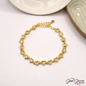 Add a touch of elegance and sparkle to your collection with this 18K Gold Plated Clear Cubic Zirconia Heart Link Bracelet. Crafted from brass and plated with real 18K gold, this bracelet features heart-shaped links adorned with sparkling clear cubic zirconia. Free from cadmium and lead, it’s a safe and stylish accessory perfect for women who love creating elegant, luxurious jewelry. These bracelet blanks are adjustable up to 9 inches.