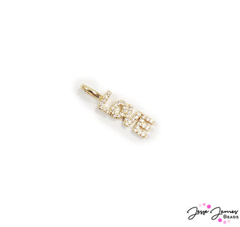Show your love with this elegant pendant featuring the word Love in a beautiful, delicate design. The piece is embellished with micro pave clear cubic zirconia for a sparkling finish and plated in a rich golden hue, making it the perfect addition to any Valentine's Day jewelry creation. With a convenient hole size for easy hanging, it's ideal for necklaces, bracelets, or charm designs. 24x6.5x2.5mm, Hole: 3.5x5.5mm