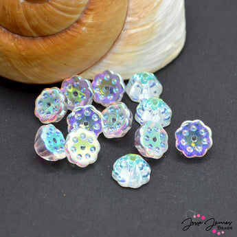 These AB Crystal beads add an abstract Jellyfish appearance to any jewelry project. Each piece features a high sparkle AB finish, adding a rainbow of color to any project. Each set includes 12 beads. Measure 11mm X 5mm.