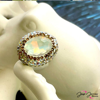 Add a pop of sparkle to your next piece with this rhinestone incrusted crystal focal bead. Each bead features an opaque AB Crystal center surrounded by mini AB rhinestones. Each bead in sold individually. Available in 2 sizes!