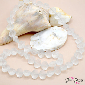 A delicate fusion of elegance and coastal charm. With their frosted finish, these beads shimmer like sunlight dancing on ocean waves, while the subtle seashell-inspired design lends a hint of seaside whimsy. Beads measure 14.5mm X 12mm. Each strand contains approximately 50 seashell beads.