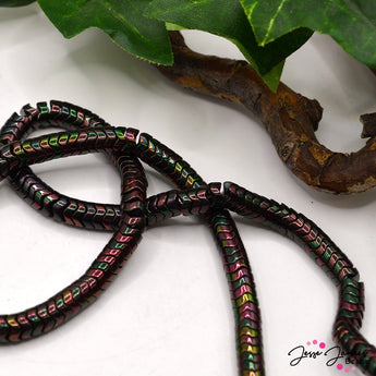 The combination of smooth curves and bold colors gives a dynamic, snake-inspired look that's perfect for creating standout jewelry. Ideal for necklaces, bracelets, or earrings, these beads add a touch of sophistication and rebellious energy to any design. Hemitite Beads. 6x2mm. Approx. 80 beads per strand.