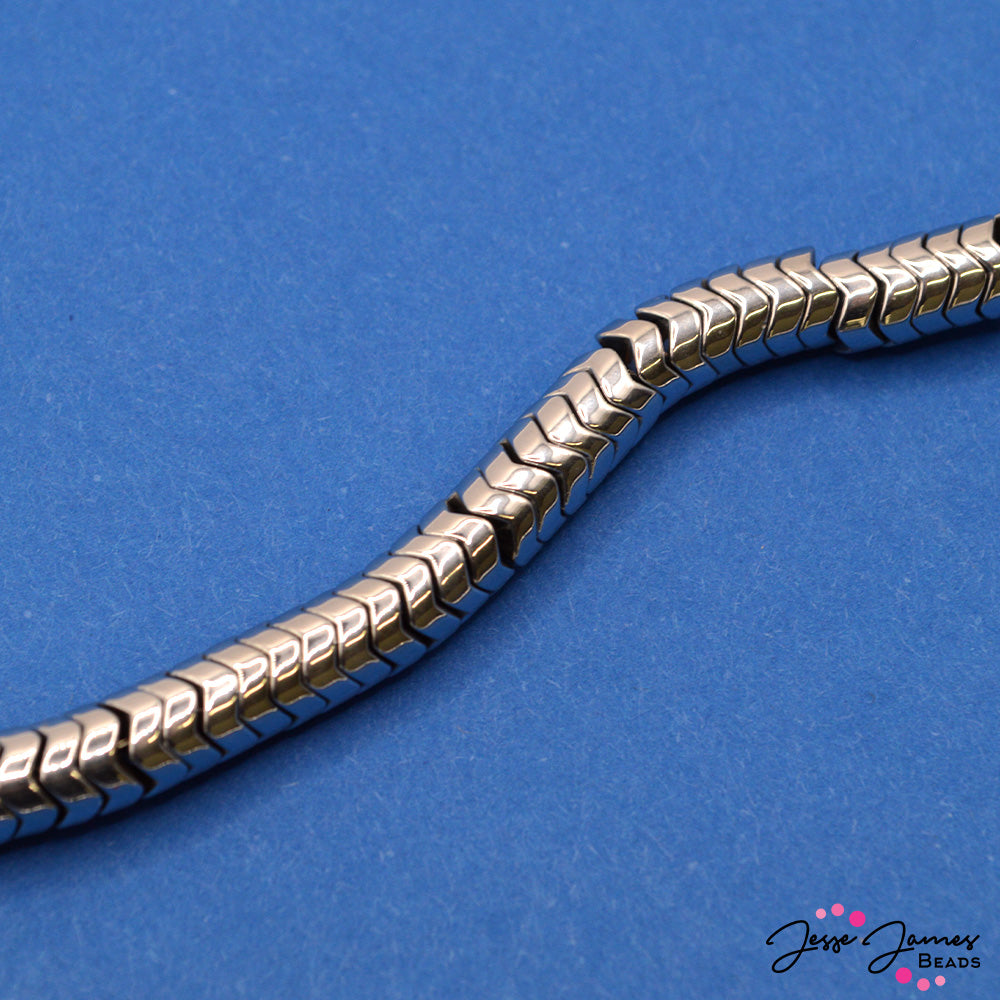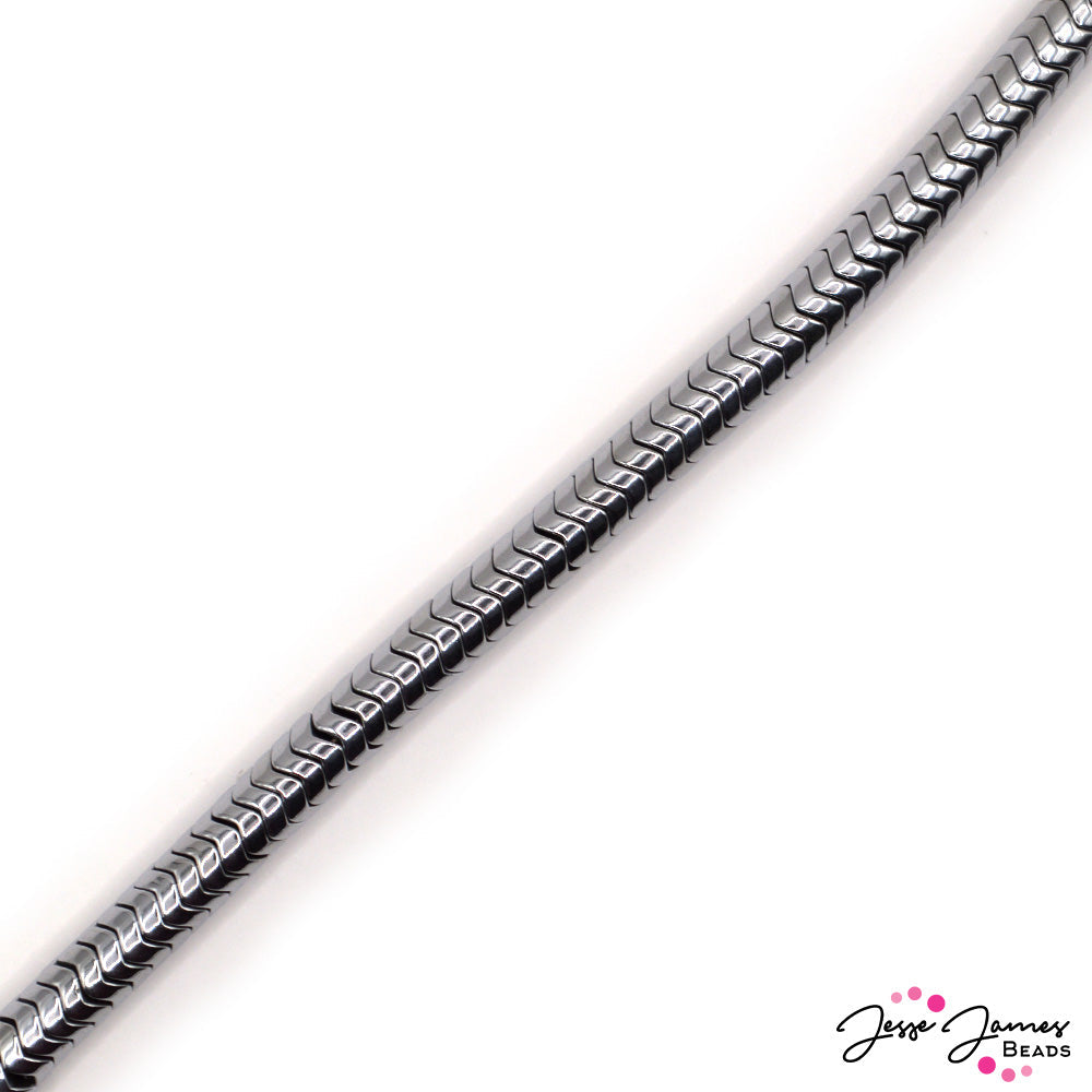 This bead strand features silver metallic Hematite beads in a striking zig-zag shape, perfect for adding an edgy, snake-inspired touch to your jewelry designs. The sleek silver finish gives the beads a modern, polished look that pairs beautifully with a variety of materials. Ideal for necklaces, bracelets, or earrings, these beads bring a bold, dynamic energy to your creations, evoking the elegance and power of a serpent in motion. 6mm X 2mm. Approx 80 beads per strand.