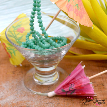 Ready to dive? These riptide inspired teal glass beads feature rich color. Their small size makes them perfect for creating earrings, bracelets, and more. 4mm sized beads. Approx. 110 beads per strand.