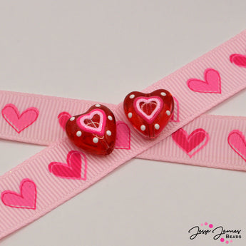 Celebrate love with this charming bead strand, perfect for your Valentine’s Day creations. Each handmade lampwork bead features intricate details, making it ideal for crafting matching bracelets, a beautiful pair of earrings, or a stunning statement necklace. The vibrant red and pink hearts will add a playful and romantic touch to your jewelry designs. Share the love and create something special with these heartfelt beads! Beads measure 14mm.
