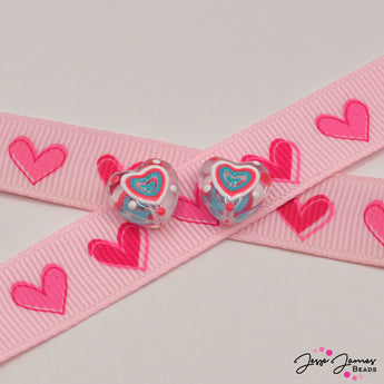 Add a burst of color and charm to your jewelry creations with this heart-shaped glass bead strand. Featuring a mix of blue, pink, and white details, these vibrant beads are perfect for crafting playful and feminine pieces. Each bead measures 14mm.