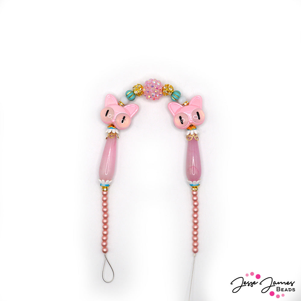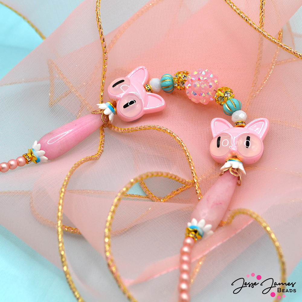 Cozy up with this adorable little kitty bead strand. This strand features bold and classy pink cat beads paired with mini pearl tails, stunning metal bead cap collars, and a few accenting components. The largest bead on the strand measures 19mm x 22.5mm x 11mm. The smallest bead measures 4mm.