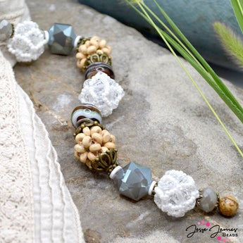 Explore the sand dunes with this crisp 7 inch bead strand features sparkling beaded beads in crystal and tan paired with ceramic accents and antique gold bead caps. Largest bead on strand measures 18mm x 17mm. Smallest bead on strand measures 6mm x 2mm. Great for Bracelet design, DIY necklaces, and more.