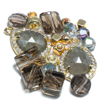 Grounded and bold, this mix combines deep brown glass beads with bright gold spacers for a look that radiates power and resilience. Perfect for creating strong, sophisticated designs that make a statement with every bead. Largest piece measures 16mm. Smallest piece measures 4mm.