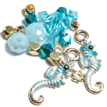 Make a splash with this playful mix of bright teal beads and gleaming gold accents, inspired by sunny seaside adventures. Each set includes two tiny enamel seahorse charms—perfect for adding a whimsical ocean touch to your beachy creations.