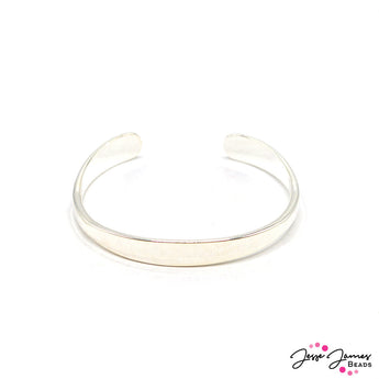 These bright gold-plated metal bangles are the perfect jumping off point for cuff designs. This flat surface is perfect for creating wire-wrapped accents. Bracelets can be bent to adjust to different wrist sizes. TIP: Warm metal in hands before bending for easy converting to different sizes. Bracelets measure 6mm tall at the thickest point. Bangles are made to fit adult sized wrists, may be too large for children.
