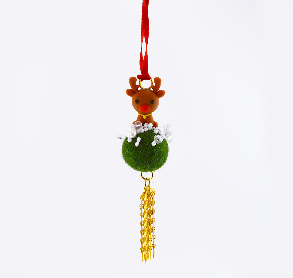 This adorable Reindeer Ornament kit features everything you need to make an adorable reindeer ornament! Each kit includes 1 felt ball (perfect for adding essential oils if desired), 1 silicone reindeer bead, 12 inches of gold-plated brass metal chain, a set of jump rings, 12 inches of red ribbon, thread, a beading needle, and a mix of glass beads.