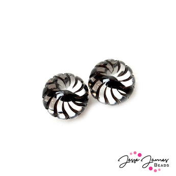 Translucent clear beads put us into a painted black trance. Each set comes with two beads, ready to hypnotize your next jewelry project. Each bead measures 13.4 mm x 17.4 mm, sold as a set of 2.