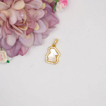 Add a touch of charm to your designs with these adorable and elegant bunny pendants. Featuring a delightful combination of a shell and rabbit charm, each pendant is plated with real 18K gold for a luxurious and lasting finish. The intricate micro pave cubic zirconia adds a dazzling sparkle, making these pendants perfect for statement necklaces or bracelets. Cadmium-free and lead-free, these pendants are crafted with care to ensure both beauty and safety. Measuring 18.5x13x2.5mm with a 3.5mm hole, they offer a refined and whimsical touch for your jewelry creations.
