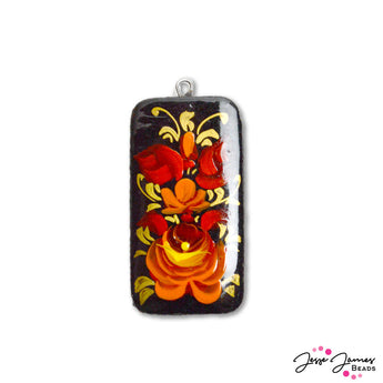 Compare this beautiful hand painted pendant to a kiss from a rose. This dramatic black and red pendant is lightweight, ideal for necklaces, bracelets, and more. Each pendant measures 37mm x 21mm x 3mm.