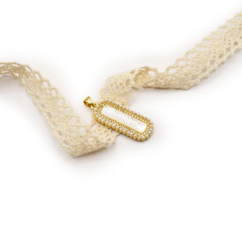 Elevate your jewelry collection with our exquisite Brass Micro Pave Cubic Zirconia Pendants. Crafted from high-quality brass and adorned with sparkling micro pave cubic zirconia, these pendants feature a stunning rectangular design. The charm also boasts a beautiful synthetic opal inlay, giving it an iridescent glow, complemented by an ABS plastic imitation pearl for a touch of elegance. These pendants are plated with real 18K gold for a luxurious finish that is both long-lasting and tarnish-resistant. Measuring 30.5x12x3mm with a 3.4x4.5mm hole, they are perfect for creating custom necklaces, bracelets, and more.
