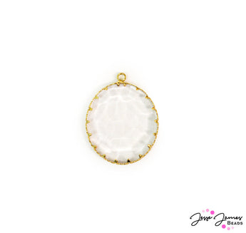 This enticing crystal and bright gold-plated metal pendant features a simple way to add elegance to any jewelry piece. This pendant features a faceted texture resembling the surface of water. Each pendant measures
