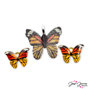 Sparkle like a monarch butterfly! This trio of pendants includes 1 focal metal pendant and 2 smaller enamel pendants.