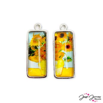 Create a gallery inspired set of earrings, necklaces, and more with these beautiful sunflower inspired pendant pair. Each pendant measures 31mm x 12mm x 6mm.