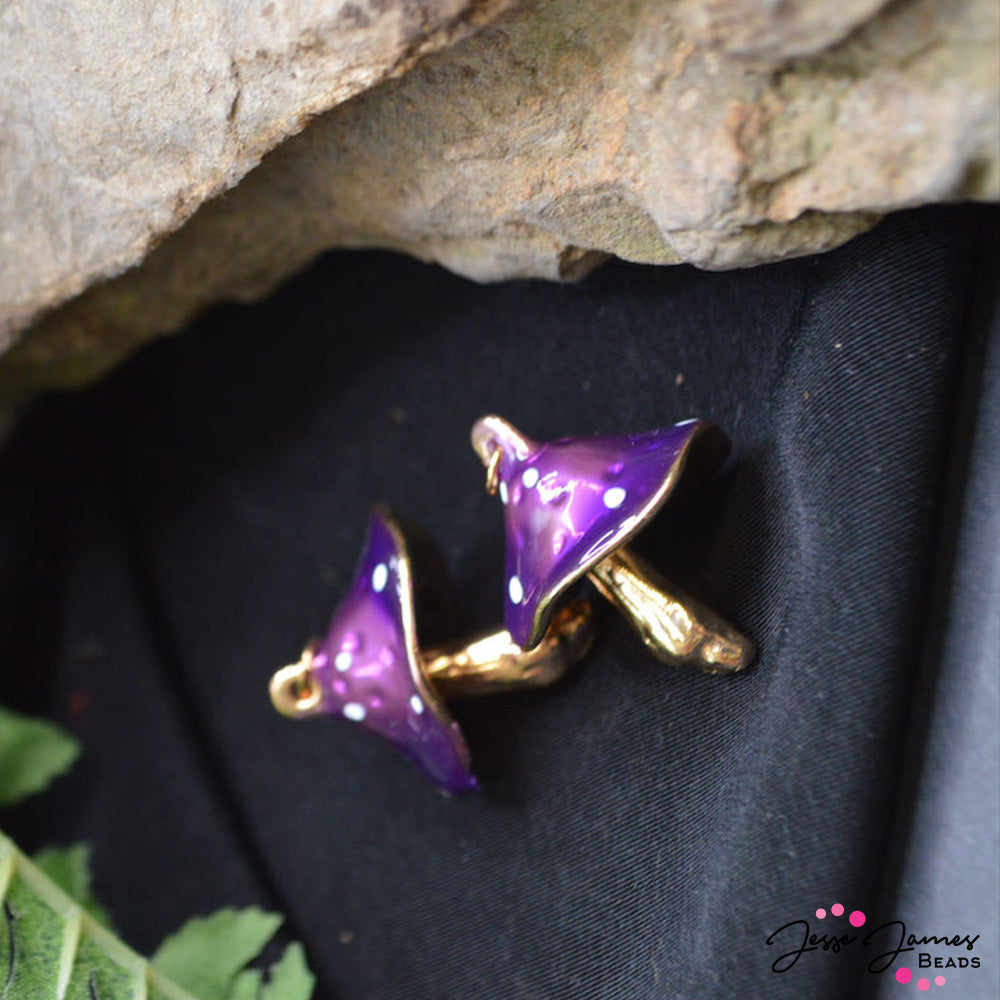 Ready to go mushroom picking? These adorable pendants feature a pop of purple color. Each pendant measures 27mm x 24mm. Inner bail measures 2mm.