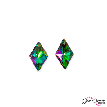 Dive into murky waters and discover mysterious treasures. These faceted glass pendants feature a unique blend of purple, pink, blue, and green. Measures 23mm x 14.5mm x 7mm. Sold in 2 pendants per order.