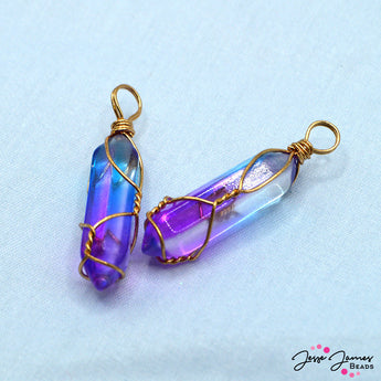 Unleash a burst of magical color with this pair of ombre-colored dagger pendants. Each dagger is delicately wire-wrapped, adding a touch of magical craftsmanship to its already spellbinding design. Each pendant measures 8mm x 32mm.