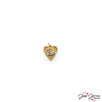 These evil eye pendant features a heart shape decorated with multi-colored rhinestones. Each pendant measures 15.6mm x 14mm x 2.4mm.