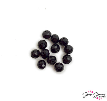 Classic black beads for elegant projects. This set of beads features a simple faceted look. Each bead measures approximately 8.3mm. 12 beads per set.