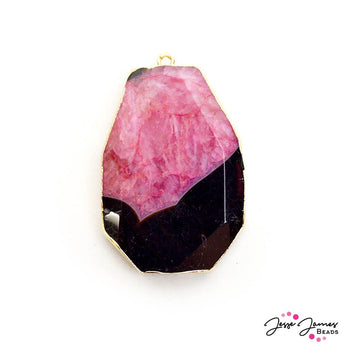 Inspired by the pinks and blacks of JJB! This signature pendant features a swirl of bright pink and mysterious black. Stone pendants may vary in size due to the stone cutting process. Colors and stone texture may also vary slightly. Pendant measures approx. 60mm x 38mm x 10mm.