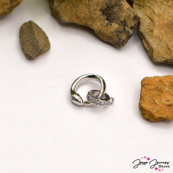 Add a striking focal point to your designs with this stunning ouroboros-inspired clasp, featuring a snake eating its own tail. Crafted in silver, it is adorned with green crystal eyes and a rhinestone-accented clasp, combining elegance with symbolism. Perfect for necklaces or bracelets, this piece symbolizes rebirth and transformation while adding a touch of refined brilliance to your jewelry. Each brass pendant measures 11mm x 8mm