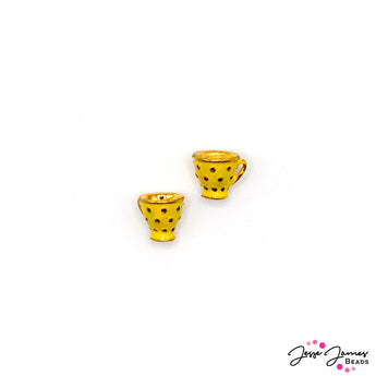 These cute yellow and black enamel teacups add a bright and whimsical look to any jewelry creation. Each cup measures 13.1mm x 15.6mm x 13mm. Features a top-down hole, perfect for stacking cups on top of each other.