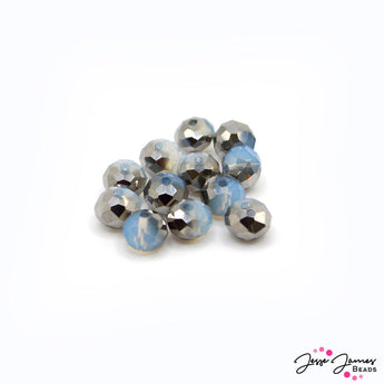 These mini 6mm beads feature a two toned blend of opaque blue grey and silver. These small sized beads are ideal for earrings, bracelets, and more.