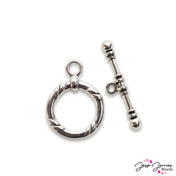 This simple toggle clasp features a breeze of motion with it's wind inspired design. Each toggle clasp measures 34x4x4mm, Hole: 3.5mm, perfect for using as a focal on a bracelet, or a subtle accenting piece on a necklace. Toggle Clasps sold in a set of 3 clasps.