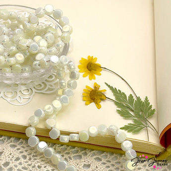 Step onto the dance floor of creativity with this pearlescent bead strand. Each bead in this captivating strand is like a graceful dancer, poised to add elegance and flair to your creations. Whether you're crafting a statement necklace, a pair of elegant earrings, or a show-stopping bracelet, this strand is sure to impress. Its versatility and sophistication make it the perfect choice for any occasion, from formal galas to casual gatherings. Measures 5mm X 6mm X 4mm. Approx 50 beads per strand.